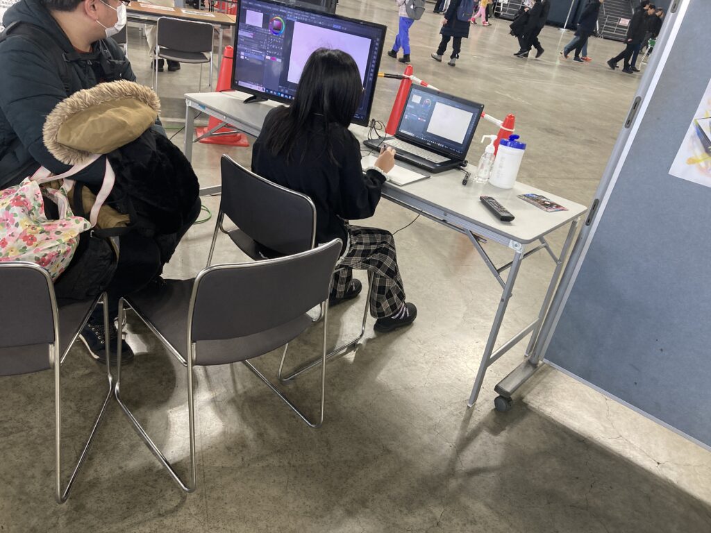 今回は、スタッフとして学生さんも来てくださったので助かりました。あとは絵が好きな絵描きさんだから、同じ絵描きとしては受付に限らず、人前で絵を描いたりのデモンストレーション稼働含めてお願いをしました。