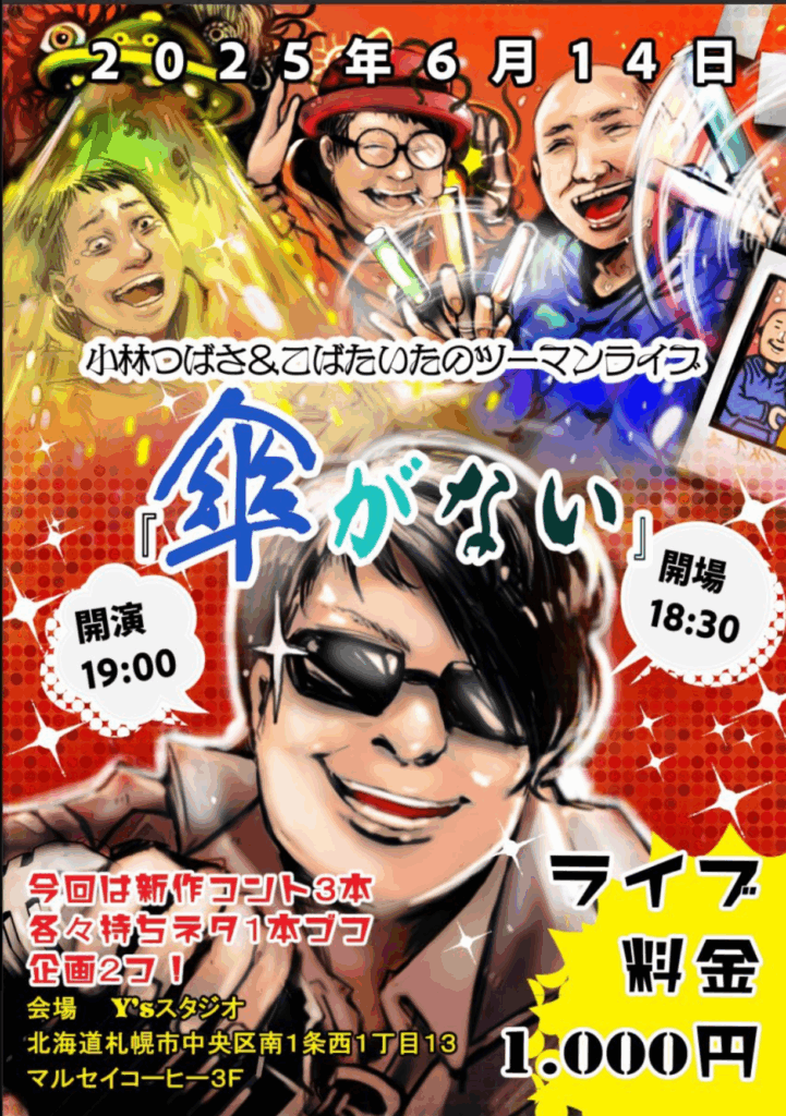 こばたいた&夢カンパニー所属、小林つばささんのツーマンコントライブの告知用ポスター用イラスト